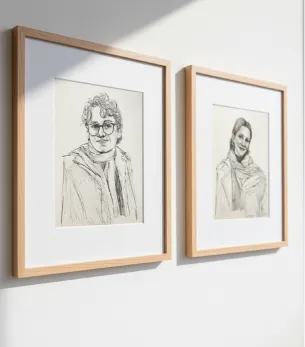 Cada ilustração é uma peça exclusiva, feita à mão, com um toque minimalista que revela a verdadeira essência do retratado.